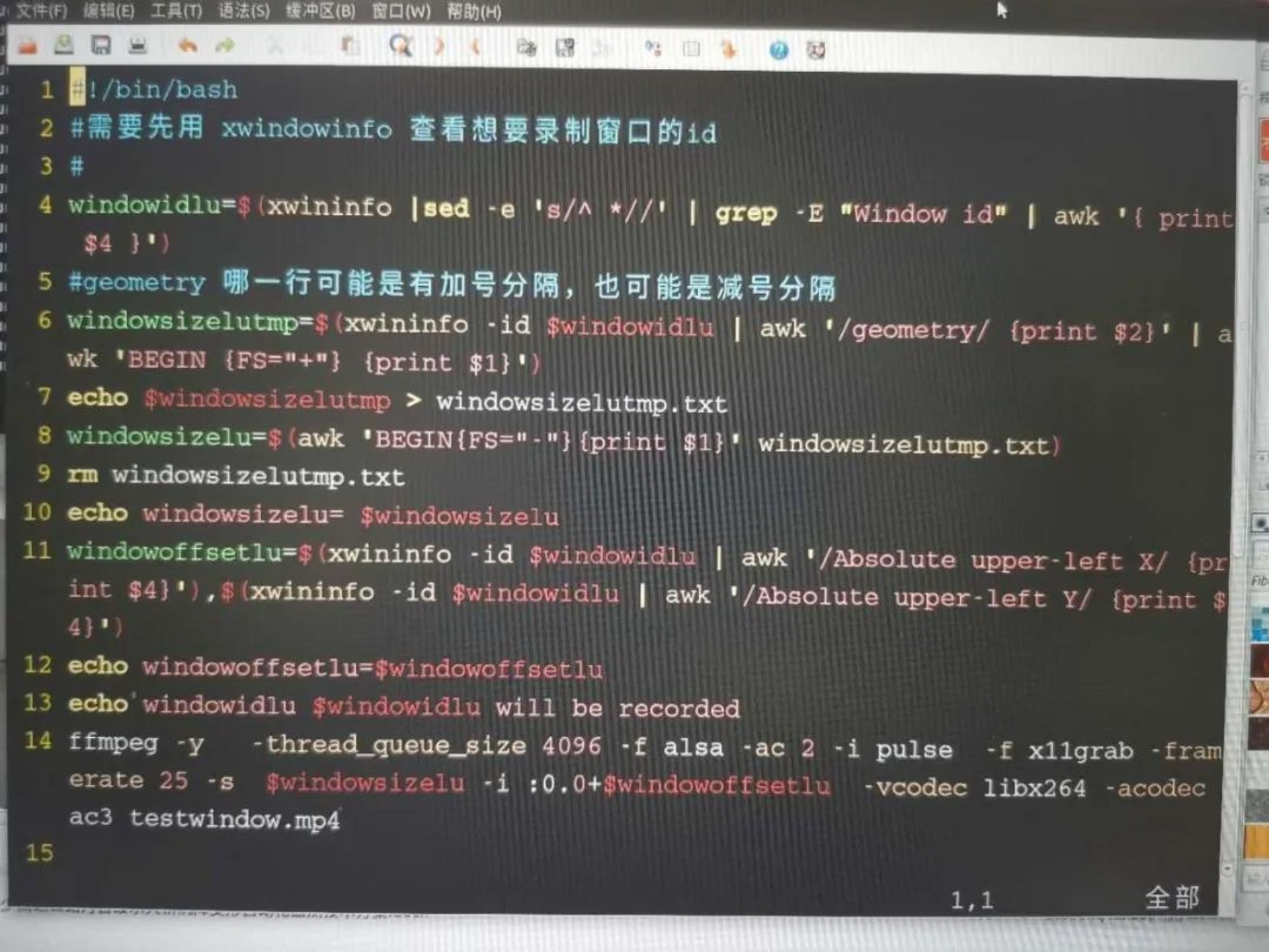 为了能够为学生制作视频,我学习了视频剪辑软件,使用的是linux操作系统、ffmpeg开源软件。我还特意编写了一个脚本,可以选择某个窗口进行录屏。同时,我安装了avidemux2.7_qt5 用来做视频剪辑。学会了使用这些软件后,感觉自己又多了一个技能,而且能使学生下载到噪音小、文件小的视频,心里很开心。