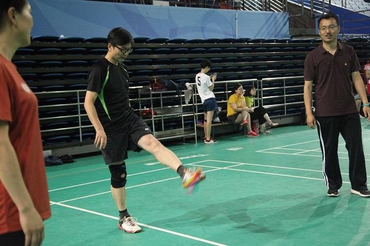 借着去年数学毽球队成功跻身前八的东风,数学学院工会本年度加大了组织力度,聚集了12位队员分成两队参加今年的比赛。其中数学二队的老师们基本上都是初次接触毽球这项运动,但在学院工会主席孙赵君老师的悉心指导与点拨下,大家很快就喜欢上了这项运动,并深深地投入其中。每一次发球入界,每一次回球过网,都在点点滴滴地积累着努力与成功的快乐。E组的6场小组赛中,5位老师陆续登场亮相,充分体验了比赛的节奏与气氛,为来年的比赛打下了良好的基础。