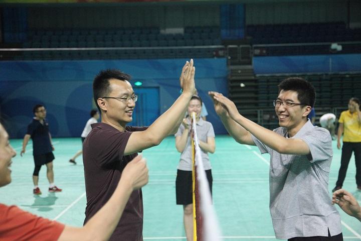 2018年6月12日—14日,北京大学教职工毽球小组赛D组和E组的比赛在邱德拔体育馆羽毛球场激烈进行。数学科学学院工会首次选送两支球队参加这两个小组的比赛。