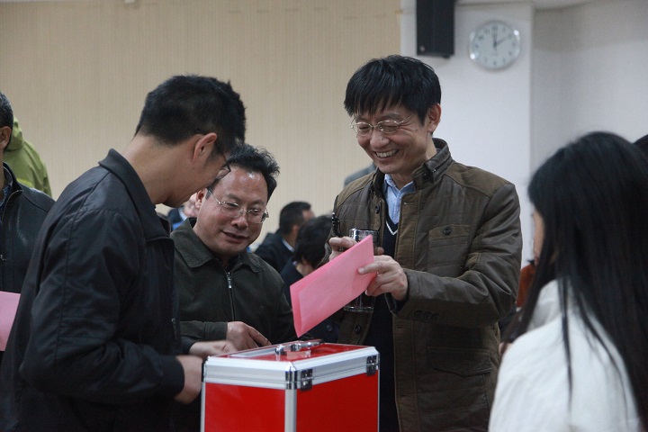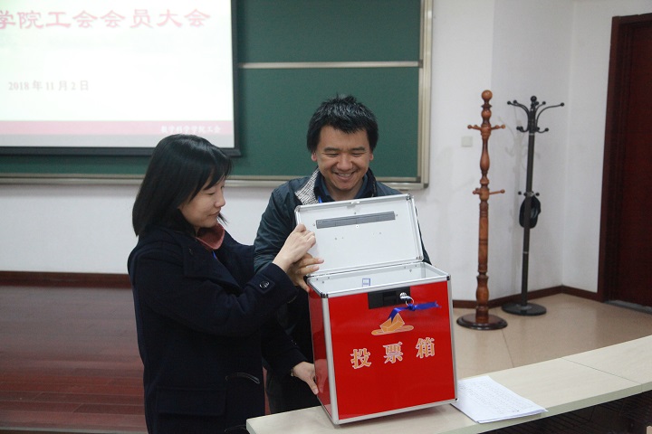 会议在雄壮的国歌声中拉开帷幕。本次会议的主要议程是选举产生数学科学学院(含数学中心)参加北京大学第七届教职工代表大会暨第十九次工会会员代表大会(简称“双代会”)的代表。经前期学院各工会小组酝酿提名,院务会研究确定了6名候选人进行差额选举。在总监票人夏壁灿教授的主持下,经过无记名投票,最终选举产生了5名“双代会”代表,名单如下(按姓氏笔画排列):