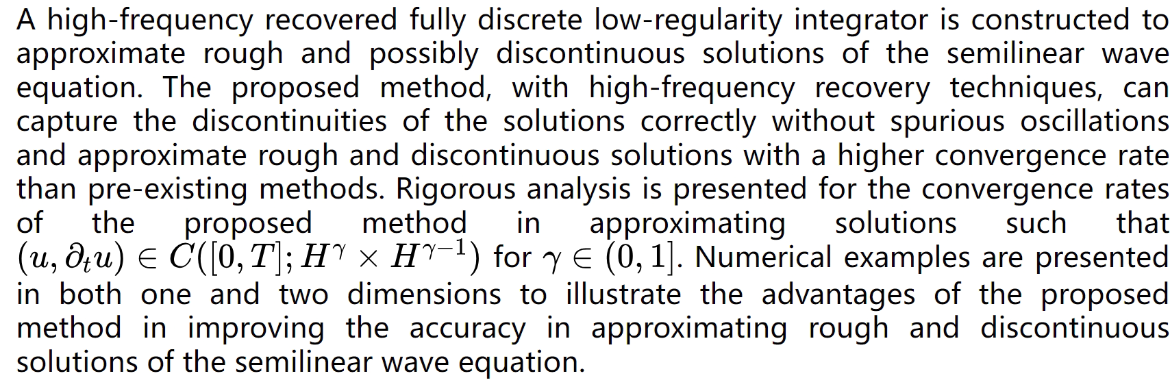 School Colloquium——Numerical Approximation of Discontinuous Solutions of the Semilinear Wave Equation