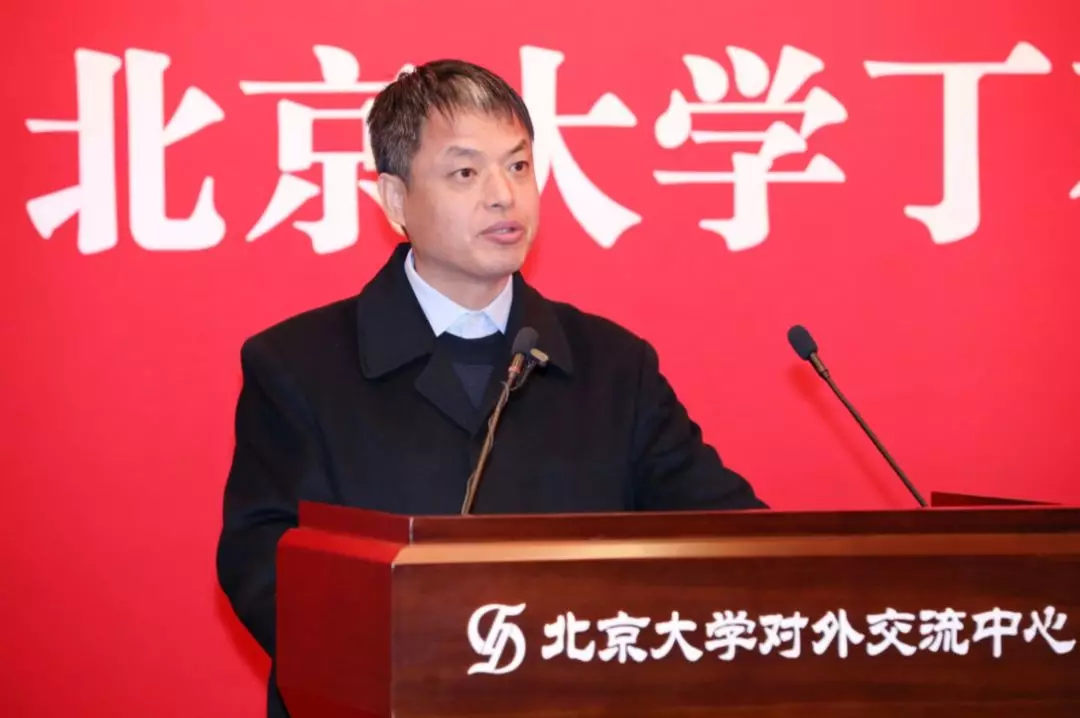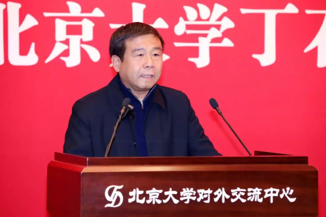 邱水平向丁干校友颁发北京大学教育贡献奖