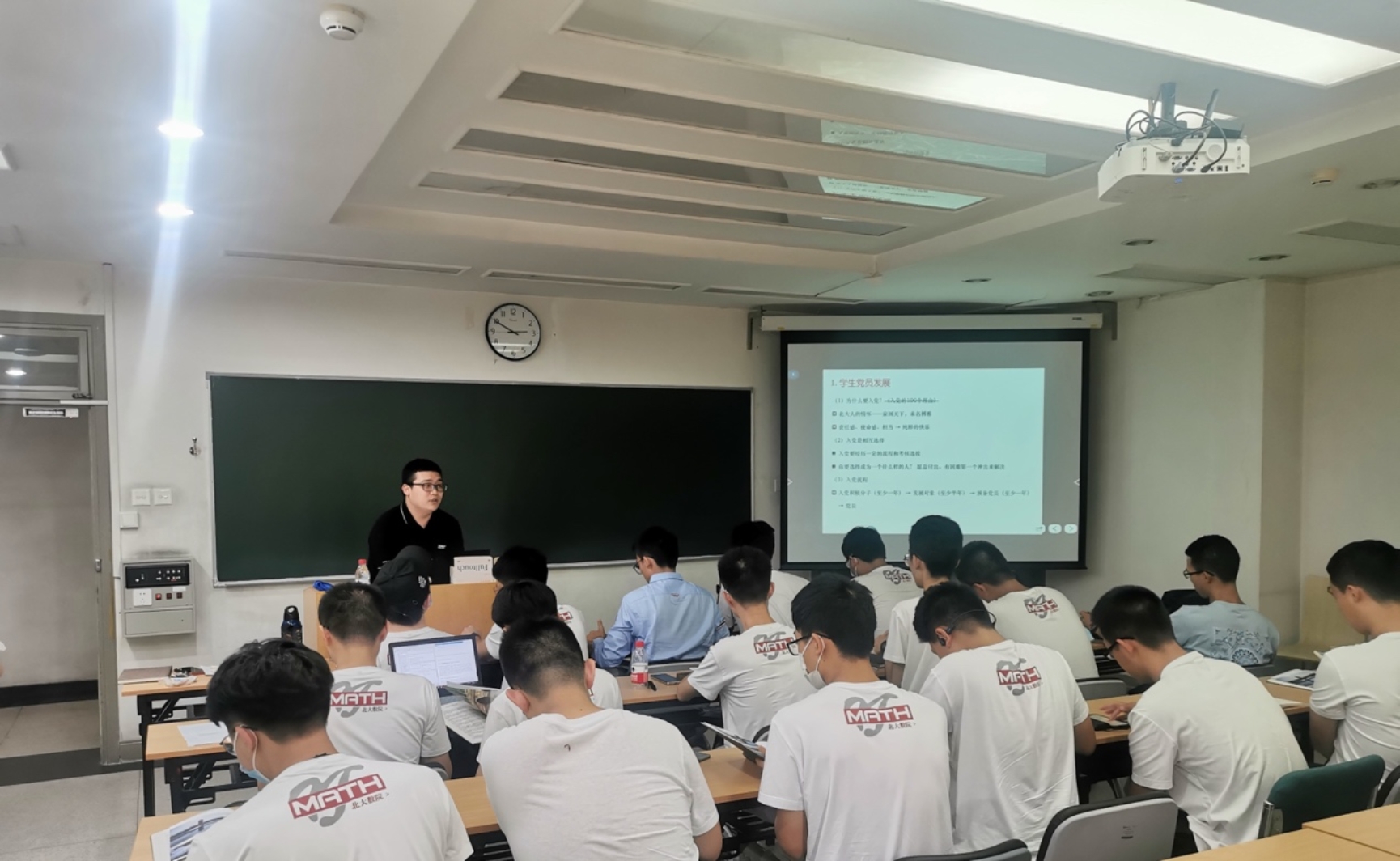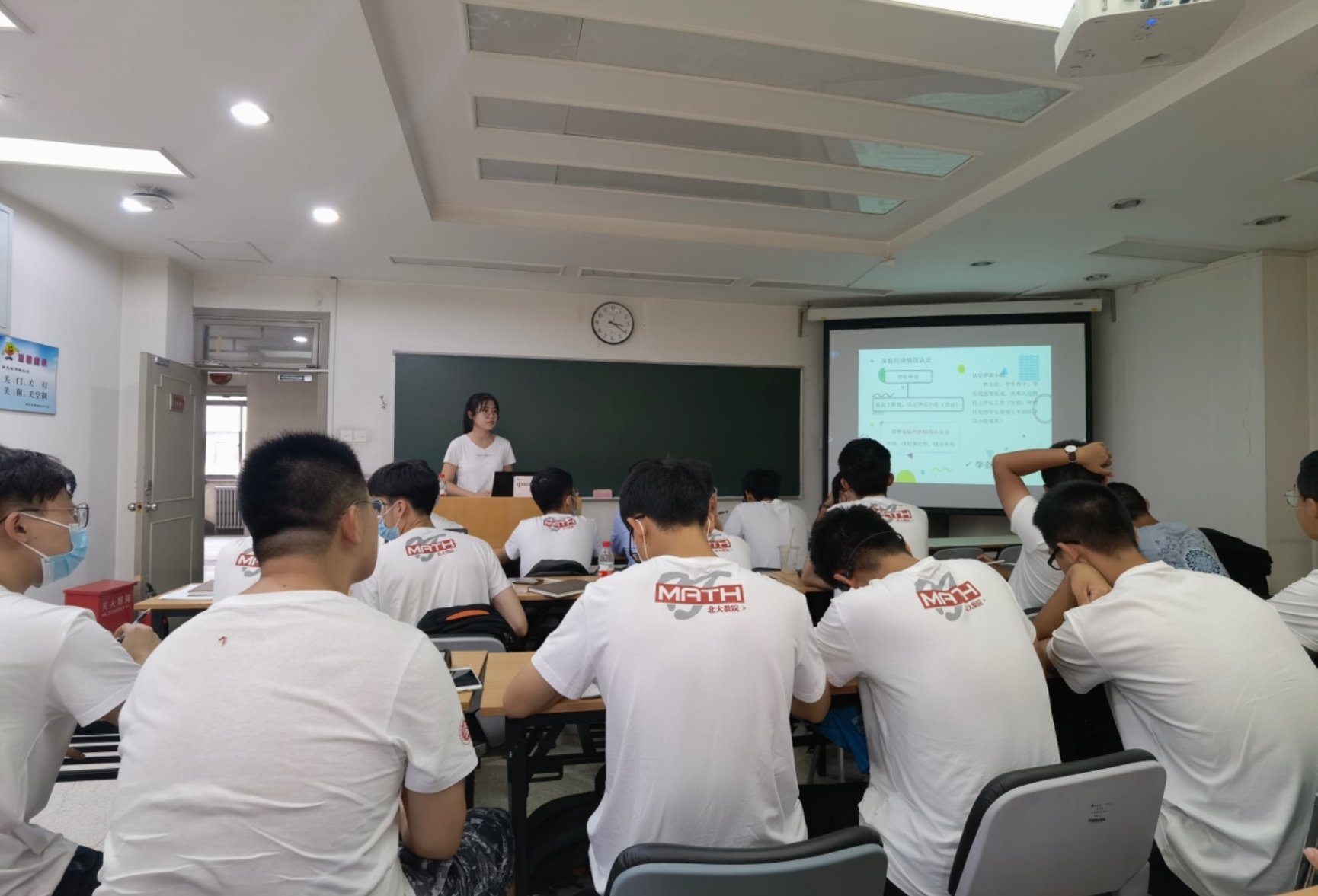 2021年9月10日下午2点30分,数学科学学院在理科一号楼1418教室召开2021级新生骨干会,院党委副书记、学生工作办公室主任董子静,学生工作办公室副主任牛贺,团委书记李珣,辅导员张力今、毋泽鹏、李炳萱、牛宝荣,2021级本、硕、博各班级班长、团支书参与此次活动。