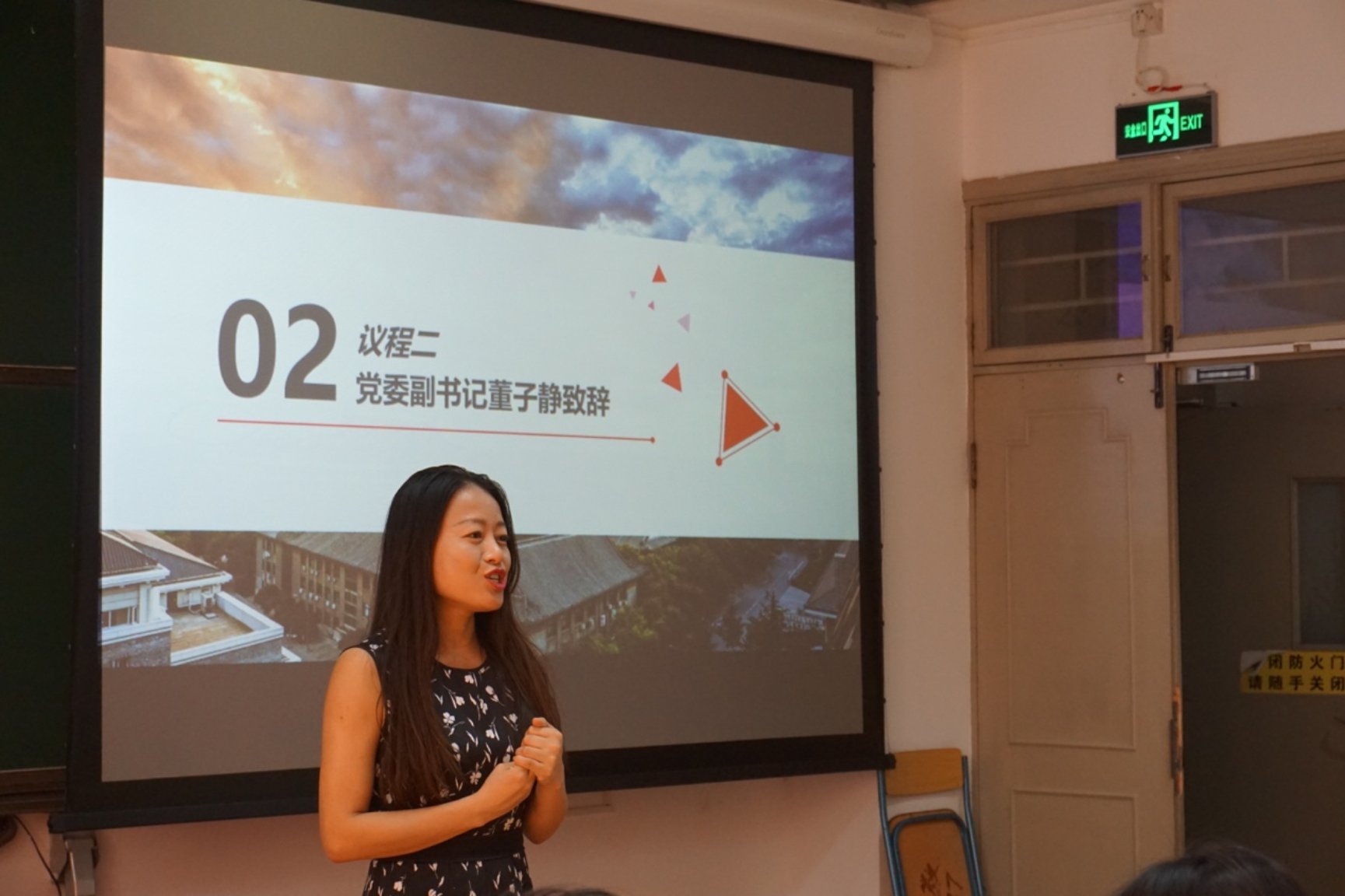 李珣表达了对团校新生学员的欢迎,她说,团校是骨干培训学校,同学们要在这里提升自己的本领,也要在这里充分发挥自己的潜力,将所学、所思变成实际可行的活动,丰富学院的第二课堂,为学院发展贡献自己的一份力量。