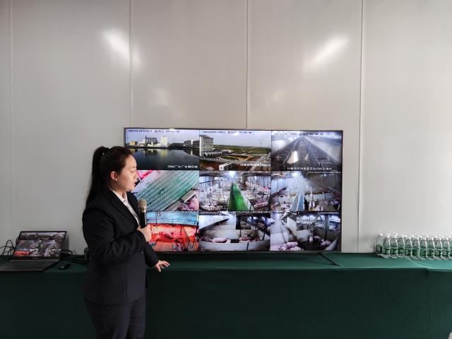 5月5日上午9时,实践团来到内乡综合体——牧原集团第三代繁育基地。综合体集饲料生产区、楼房养殖区、屠宰工厂、产品运输部于一体,集约化生产模式大大提升了效率。其中猪舍采用楼房猪舍设计,相比传统平房养猪,楼房养猪可以节约用地90%以上,节约用水70%以上。同时,封闭式的分区管理、智能化控制通风,可以确保生猪与外来疫病完全隔离。在模型介绍棚内,同学们观看了猪场内部的远程监测视频,了解到了猪舍的实地情况,还参观了智能养猪器械的实物:可隔绝猪瘟的四层空气过滤网、精准测算食量的饲喂机器、代替人工的除粪机器人、每日8次巡视猪栏的智能巡检机器人……同学们纷纷表示智能科技对畜牧业产生了颠覆性的革新,给企业管理和技术工人的工作带来了便利。