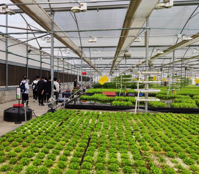 5月5日下午1时,实践团来到由内乡县政府和以色列索丽公司、牧原集团三方合作建设的中以农业园,农业园占地近2000亩,园中设有生菜、黄瓜等作物的无土栽培大棚和草莓培育中心,精准的营养配比、自动化的控温控湿条件培育出品质优良的农产品。