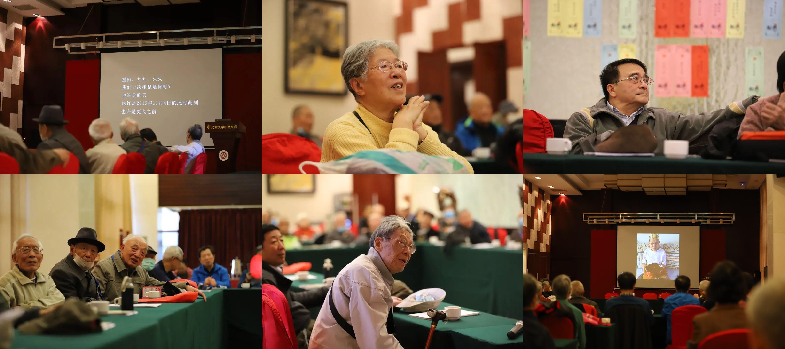 重阳不重样,长情常相伴。80多岁的张绪定老师分享了退休二十年的生活,参加马拉松、骑行、游泳、推着老伴环游世界。平淡话语间足见伉俪情深,也充分展现了离退休教职工以阳光心态热情拥抱生活的精神风貌。