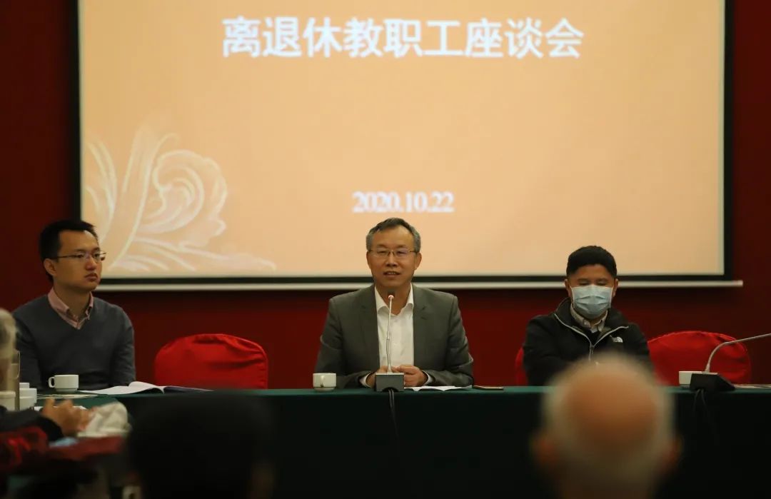 随后陈大岳从教学科研、人才引进、软硬件设施等方面向退休老师们汇报了学院近一年的工作和取得的成绩。陈大岳提到,疫情期间学院各项工作稳中有序进行,疫情催生了网络教学和在线学术报告等云端交流新形式,如今中美关系急剧变化,百年未有之变局带来留学形势的变化以及生源的很大改观。陈大岳还向与会老师汇报了数学大楼建设的相关进展,在离退休办公室的细节设计上充分考虑退休老师的需求。同时他还提到,校友一直很关心学院退休老师,春晖项目由校友发起捐资设立;学院近期还收到一笔校友捐款,捐赠人以其导师钱敏平教授的名义设立奖学金,这是学院首次也是北大历史上不多见的学生捐资以老师名字设奖,反哺师恩的同时更是对老师们多年杏坛辛勤耕耘最好的肯定。