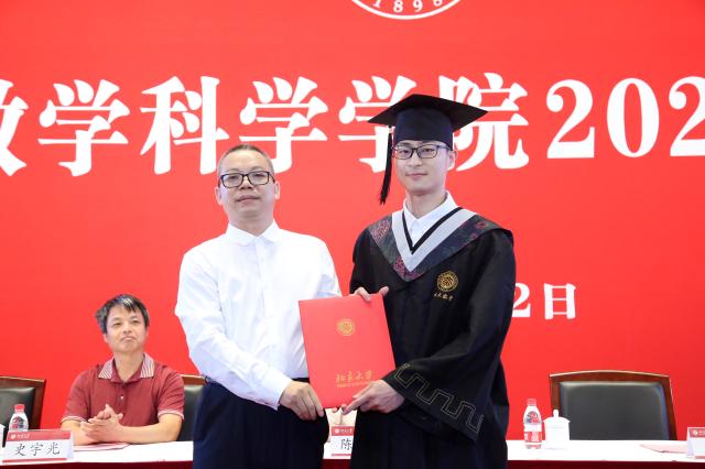 研究生代表2016级博士生王亮分享了自己在北大数院的经历和感悟,带大家回顾了北大数院人丰富多彩的生活,他希望各位同学能永远牢记北大数院人的使命担当,为建设伟大祖国贡献自己的青春力量。