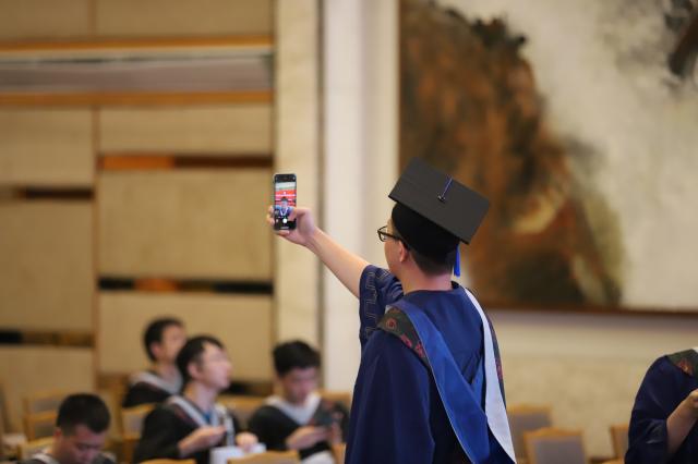 毕业典礼结束后,陈大岳、胡俊、史宇光和李若为毕业生拨穗。“送君千里,终须一别”,同学们与各位老师亲切交谈,老师们勉励同学们铭记北大光荣传统,秉承数院优良作风,在今后的人生新历程中继往开来、阔步向前。