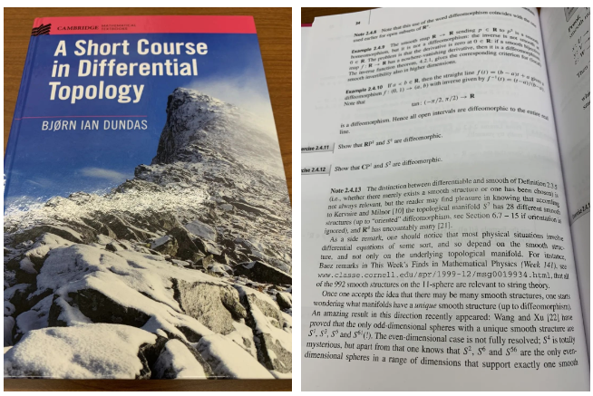 然后Kervaire和Milnor做了一系列的工作,讨论了一系列这方面的问题:球面上是否存在怪异的微分结构,有多少个,如何分类……例如,Milnor发现的七维怪球,它其实是七维球面的28个微分结构之一;跟自身连通和28次,就得到了标准球面。