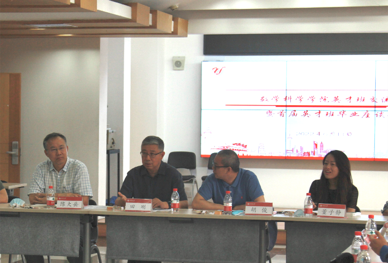 数学科学学院“英才班”于2018年开设,如今首届英才班同学们即将毕业,各级英才班同学们齐聚交流,通过充分了解各级英才班同学们的需求及反馈,为未来英才班学生的选拔及培养提供经验,更有力地推进学院人才培养工作,并希望充分依托学校搭建的第二班主任平台,为英才班同学们的学习发展提供精准化支持与指导。