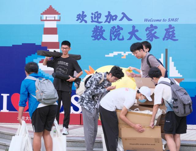 为了让新生更好地认识数院,一入学就体验到家的温暖,学院负责迎新工作的老师与学生志愿者从暑假便开始了筹备工作。统计新生信息、设计迎新展板、准备具有学院特色的“迎新大礼包”……从特别定制的巨幅易拉宝,到开学礼包中贴心的学院文创,从横幅到宿舍门贴,都凝聚着老师和学长学姐们对即将踏入燕园的学子们真挚的欢迎之情。