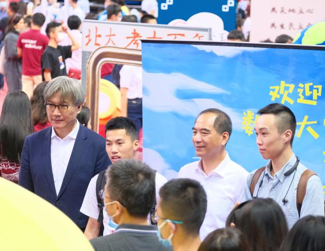 北京大学党委书记郝平,校长龚旗煌,副校长、教务长王博,副校长张平文,党委副书记、纪委书记顾涛,党委副书记、副校长宁琦等校领导先后来到数院迎新现场,慰问迎新志愿者,欢迎新生来到北京大学。郝平肯定了数院新生的精神风貌,并勉励同学们继续努力,勇攀高峰。同时,他走访数院本科新生宿舍,与在场的班主任、带班辅导员和新生同学们亲切交谈,关心同学住宿情况。