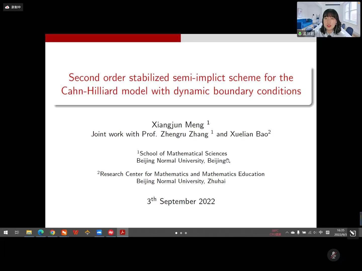 2022年9月4日傍晚,为期三天的“第五届北京大学计算与应用数学拔尖博士生研讨会暨第八届北京计算数学研究生论坛”完满结束。本次论坛由入选北京大学“计算与应用数学拔尖博士研究生培养计划”的博士生共同发起组织,得到了北京大学研究生院、北京大学数学科学学院和北京计算数学学会的联合资助,邀请到北京大学胡俊、李铁军、邵嗣烘、张磊、吴朔男和中国科学院谢和虎六位老师为指导老师。本次论坛共邀请了22所国内外顶尖高校及科研院所的27位优秀博士生作为报告人,采用线上、线下相结合的方式,旨在为计算数学的优秀博士生提供一个交流展示的平台,促进不同学校之间的相互学习,拓宽研究视野,提高表达能力,更好地了解计算和应用数学的前沿。