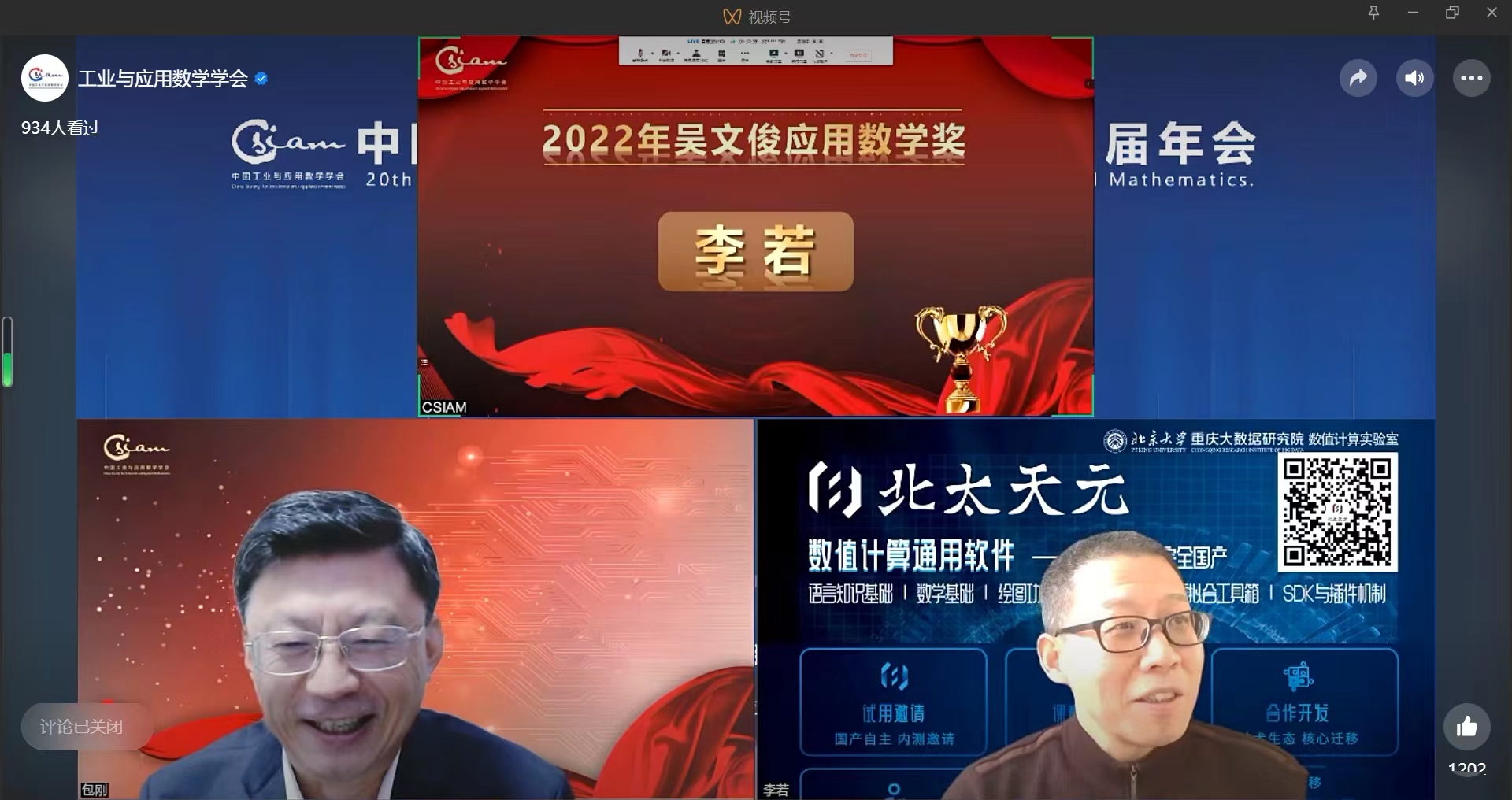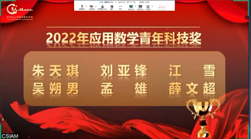 11月18日,2022年中国工业与应用数学学会(以下简称学会,英文简写为CSIAM)各大奖项在学会第二十届年会上重磅揭晓。北京大学数学科学学院教师李若教授获吴文俊应用数学奖;吴朔男助理教授获应用数学青年科技奖。院友黄鸿慈教授获苏步青应用数学奖;罗智泉教授获王选应用数学奖;朱天琪副研究员获应用数学青年科技奖。此外,学院教师陈松蹊院士、院友王筱平教授当选2022年学会会士;院友翟起龙副教授入选青年人才托举工程。