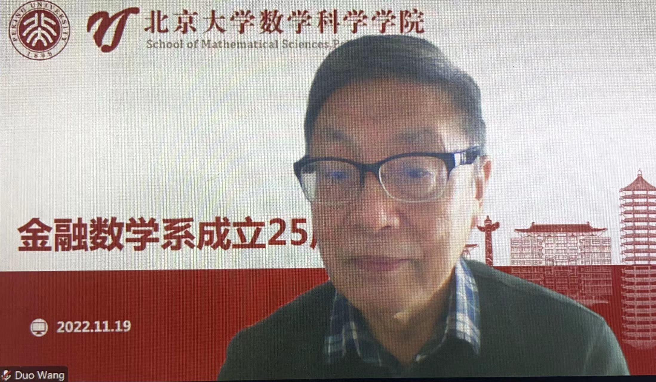在上半场活动中,王铎教授作为金融数学系首任系主任,深情回顾了金融数学系的发展历史,特别分享了建系前后的往昔故事。他表示,金融数学系的建立是一次“急国家之所急”的划时代之举,并表达了对金融数学系建系二十五周年的祝贺与期望。