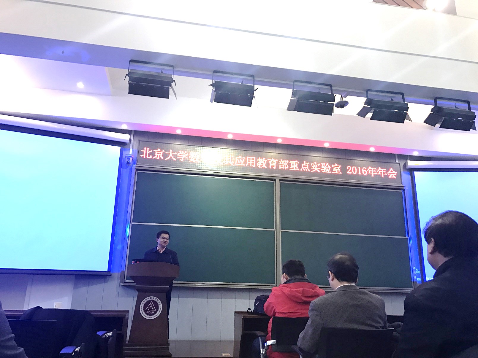 12月24日上午,“数学及其应用”教育部重点实验室在北京国际数学研究中心甲乙丙楼报告厅召开2016年年会,共有一百多人到场参会。重点实验室主任张平文院士主持开幕,数学科学学院院长、北京国际数学中心主任田刚院士致辞。