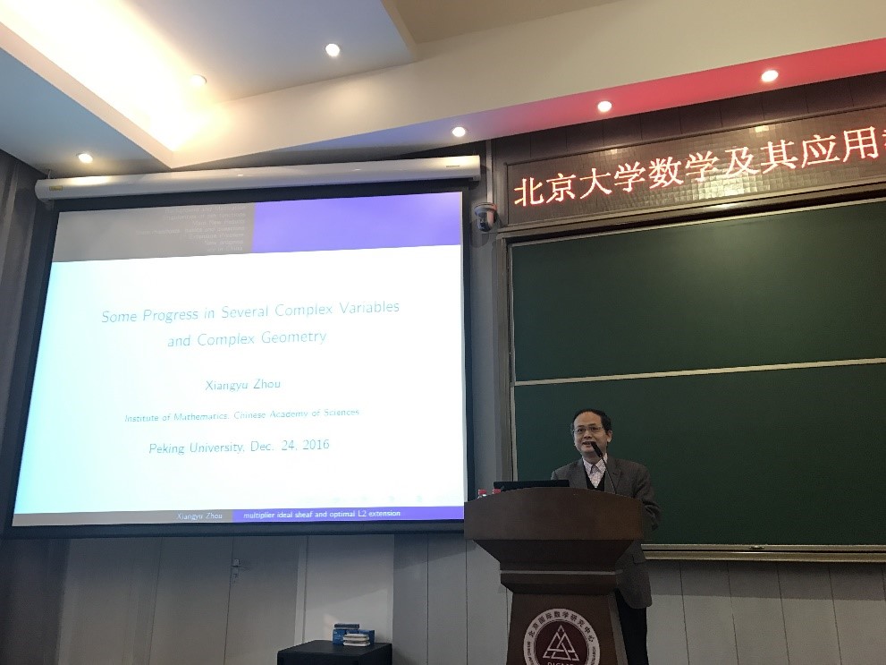 上午,中国科学院数学与系统科学研究员周向宇院士、南开大学陈省身数学研究所尤建功教授与四川大学数学学院张旭教授做了精彩的学术讲座。下午北京大学青年学者余君、刘保平、史逸、蔡云峰、黄辉、林伟分别在年会上汇报了自己的学术成果。