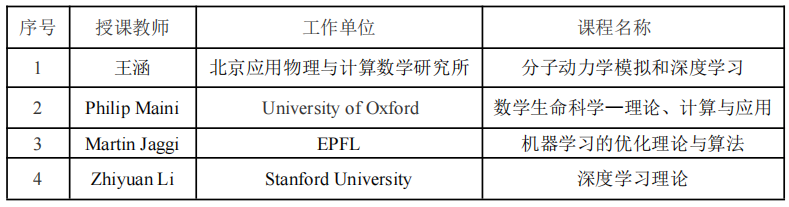 课程设置:2023 年北京大学研究生应用数学专题讲习班将开设 4 门课程,具体如下: